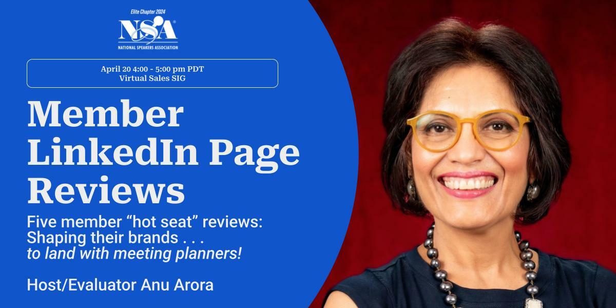 Join us as chapter member Anu Arora reviews five LinkedIn pages with these filters in mind: